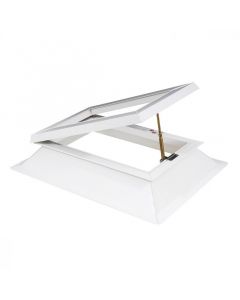 Ventilatie lichtkoepels zijn zeer geschikt wanneer u uw ruimte wil ventileren, onze ventilatie lichtkoepels zijn open te zetten tot 30 cm. De ventilatieramen zijn er in een elektrische en handmatig te bedienen uitvoering. De kleinere lichtkoepels worden enkelvoudig bediend, dit zijn de solo ventilatieramen. De grotere lichtkoepels worden door middel van een tandem bediend. De ventilatieramen worden altijd volledig voor gemonteerd geleverd waardoor er enkel nog een vierkante- of piramide lichtkoepel opgezet dient te worden. De ventilatieramen met handmatige bediening zijn voorzien van een pvc opstand, ventilatieraam, enkele of tandem spindel en een stok a 2 meter. De ventilatieramen met een elektrische bediening zijn voorzien van een pvc opstand, ventilatieraam, solo of tandem elektrospindel met 230v en een inbouw schakelaar. Met deze schakelaar is het ook mogelijk op de ventilatie lichtkoepel op verschillende tussenstanden open te zetten. De ventilatieramen zijn gemaakt van PVC (AVP).